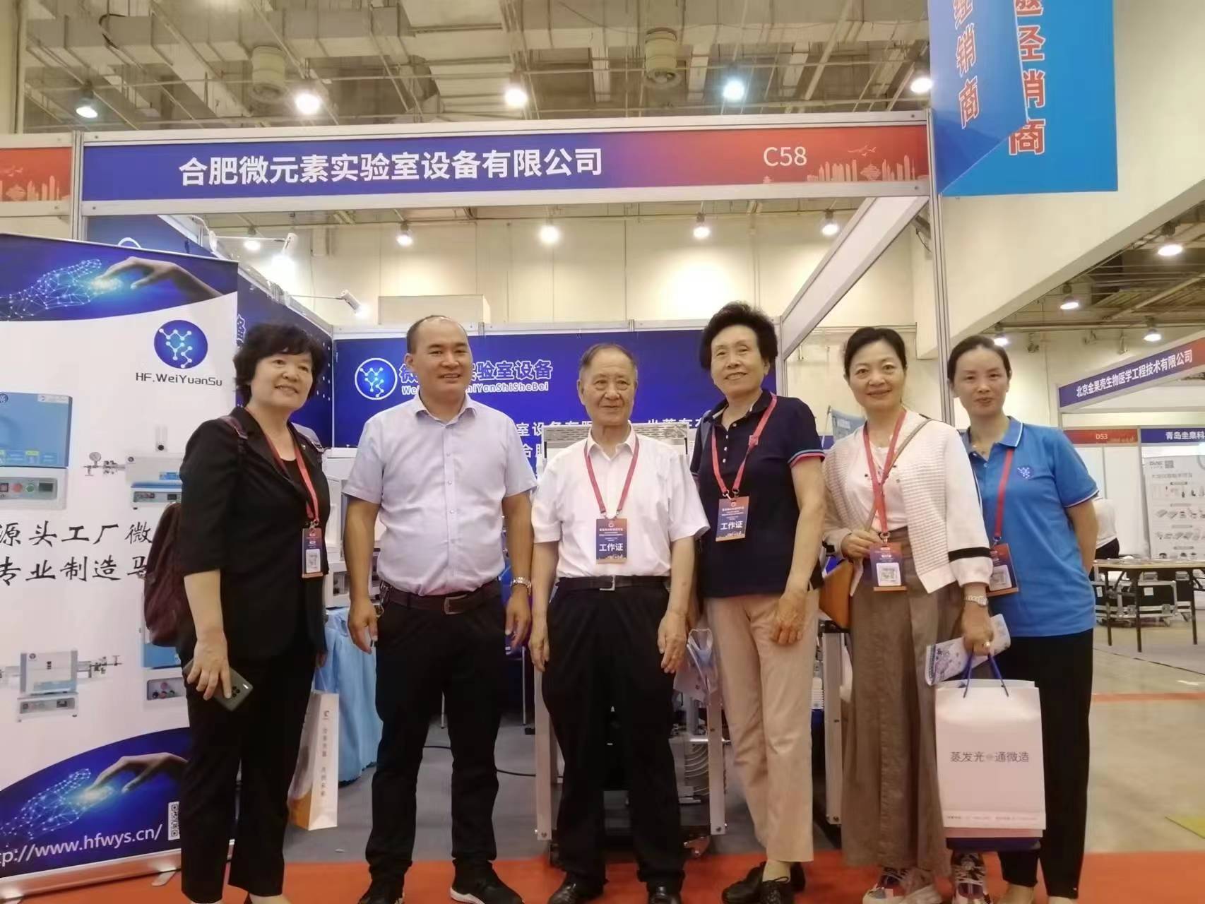 青島分析檢測學會秘書長與相關領導一行來到合肥微元素實驗室裝備的展位前親切交談并合影留戀!