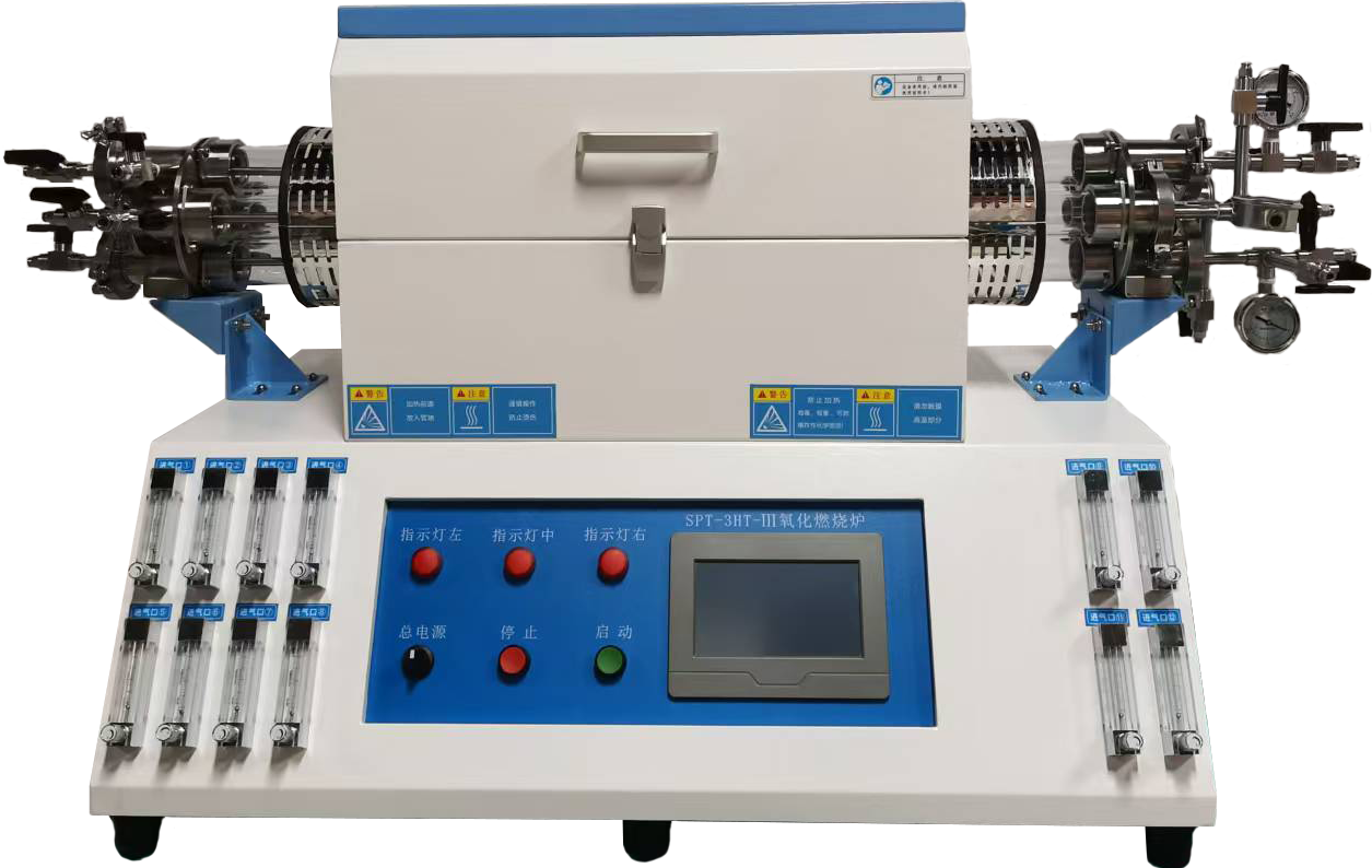 不銹鋼法蘭 | ?4*1不銹鋼密真空法蘭,兩端進/加氣,一端出氣: ?(1)樣品進樣端,分別配置2個6mm通管(加卡套卡)進氣口(氮氣和氧氣),氣體流量流量表顯示; ?(2)待測樣端:配置1個6mm通管(加卡套卡)加氣口(氧氣)和1個出氣口10mm通管(待測樣品);其中6mm通管加氣管,一定要石英管中間的法蘭圓心,便于催化器的加入。 | |